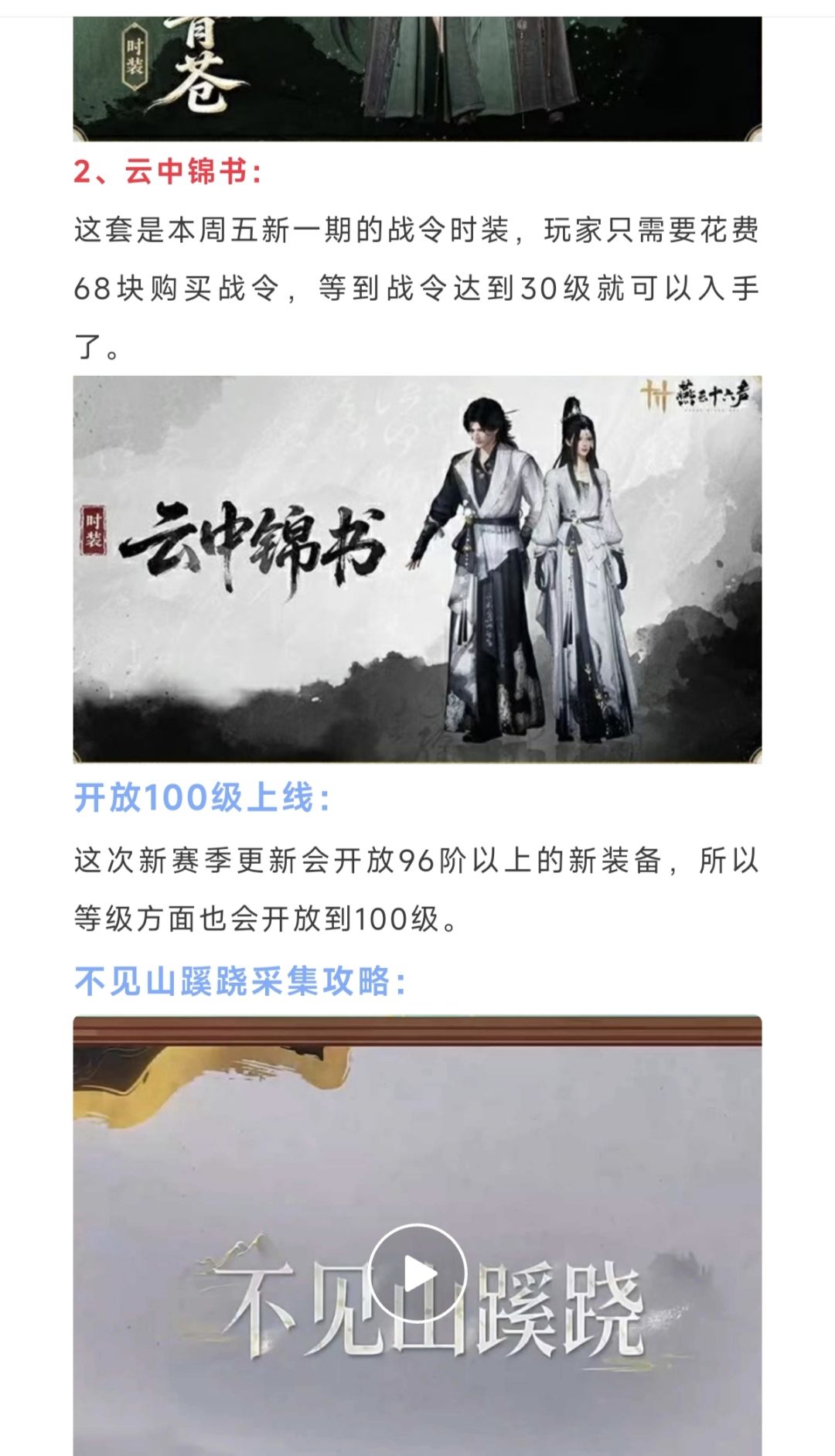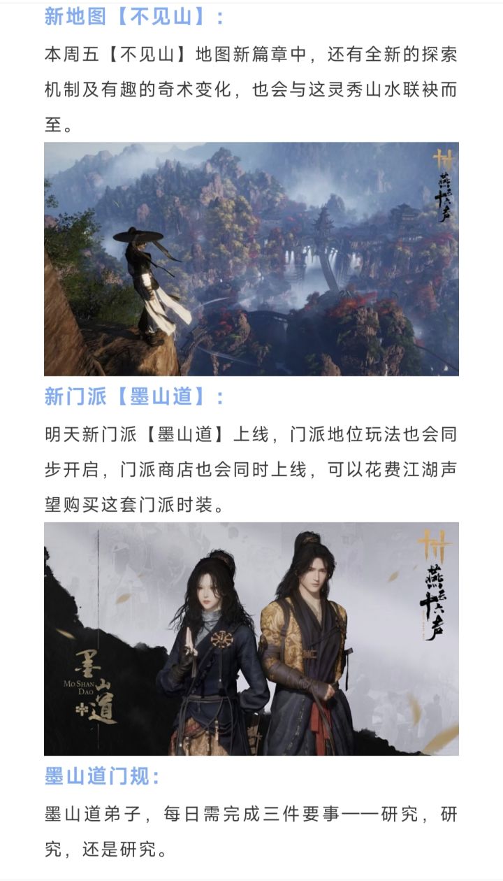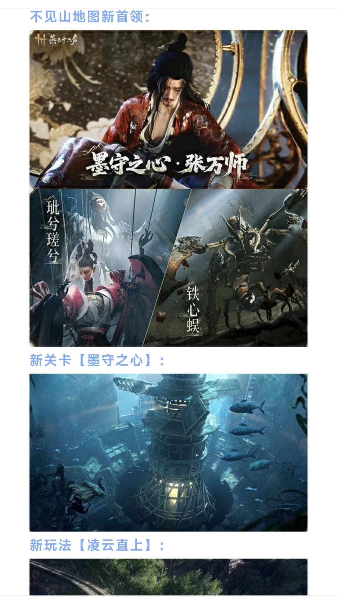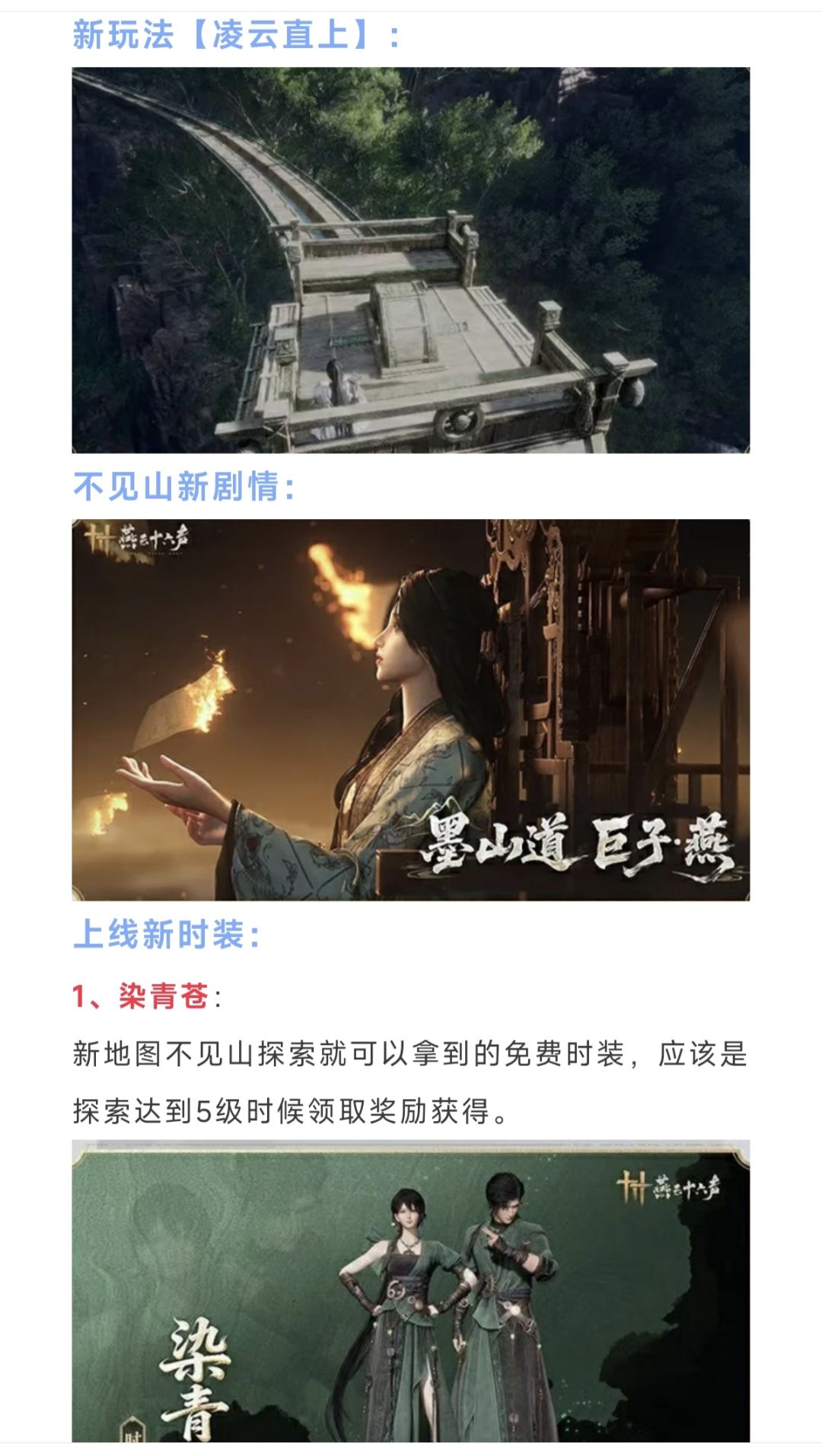 燕云十六声明天更新内容,不见山蹊跷采集攻略,开放100级,免费拿新时装,【摄星拿月】奇术进阶!新地图【不见山】,全新产业云间渡,不见山地图新首领,新关卡墨守之心,新玩法凌云直上,不见山新剧情