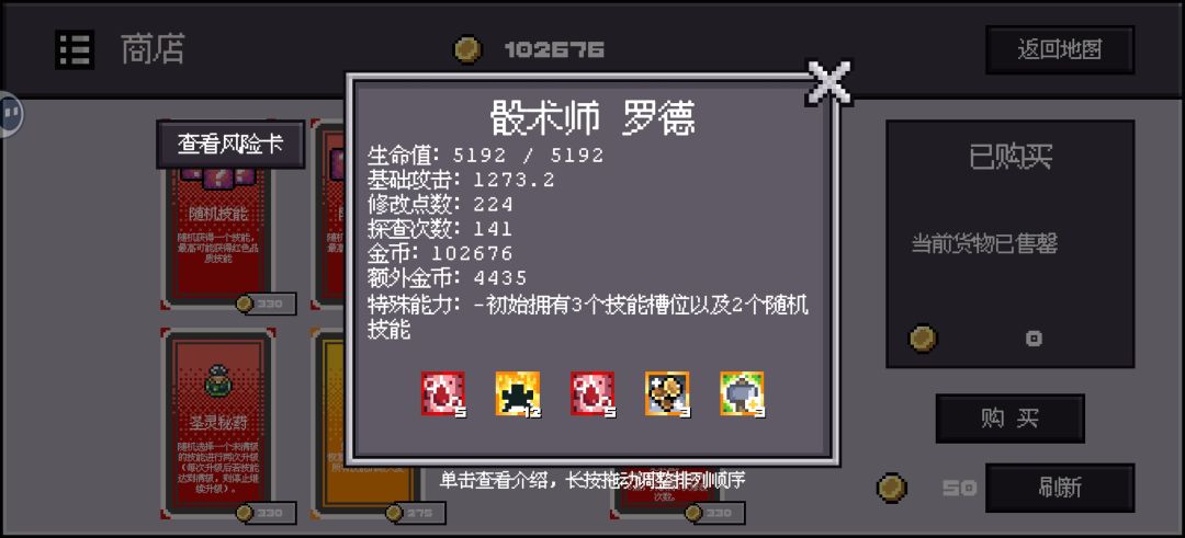 我们选的角色就用初始角色骰术师罗德就好(罗德开满技能可以带5技能)