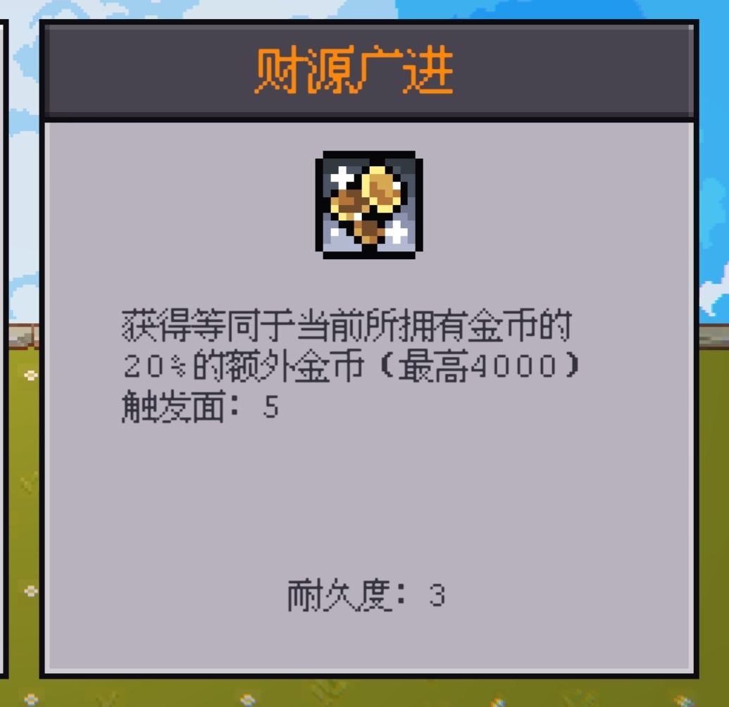 财源广进有1k-2k金币就可以开始启动了,有2w金币的时候达到最高收益,再搭配妙妙工具打一个怪成型后可以有4-5w金币的收益