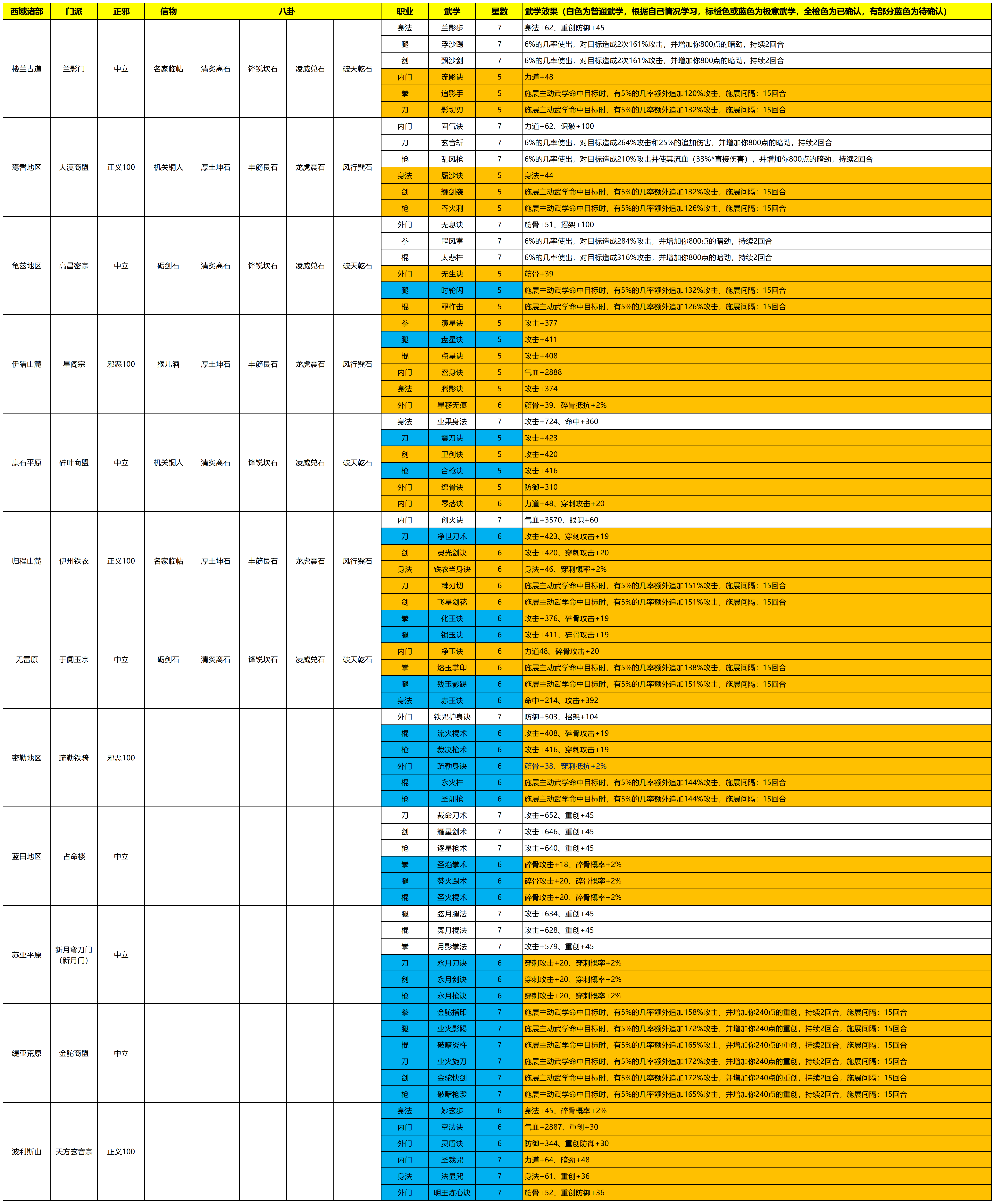 【极意武学】极意门派武学记录(待补充)