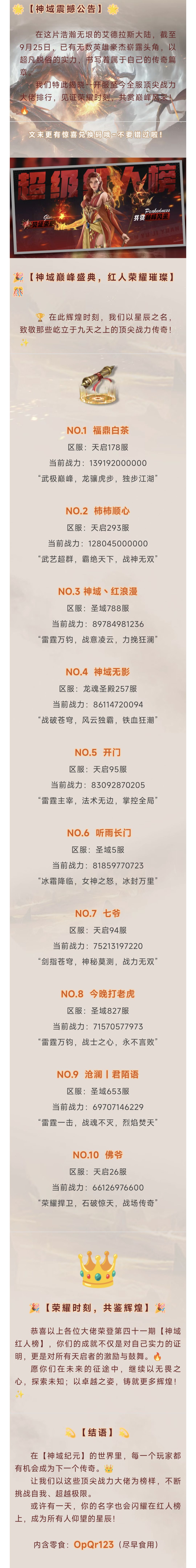 【神域纪元】红人榜丨第四十一期震撼来袭!