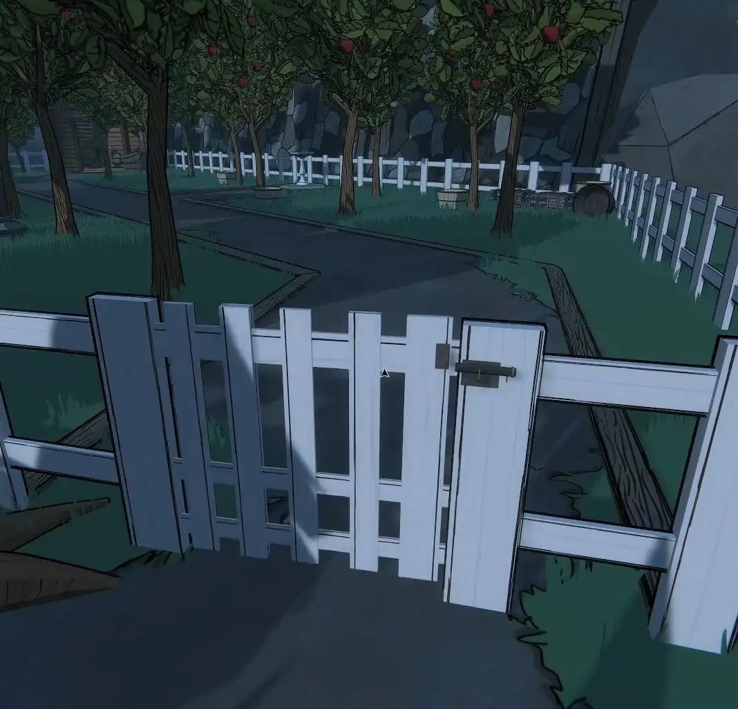 解锁车库大门出去即可找到室外房间,往正门方向走可以来到西侧大门的内侧并打开栓锁即可解锁西侧大门。