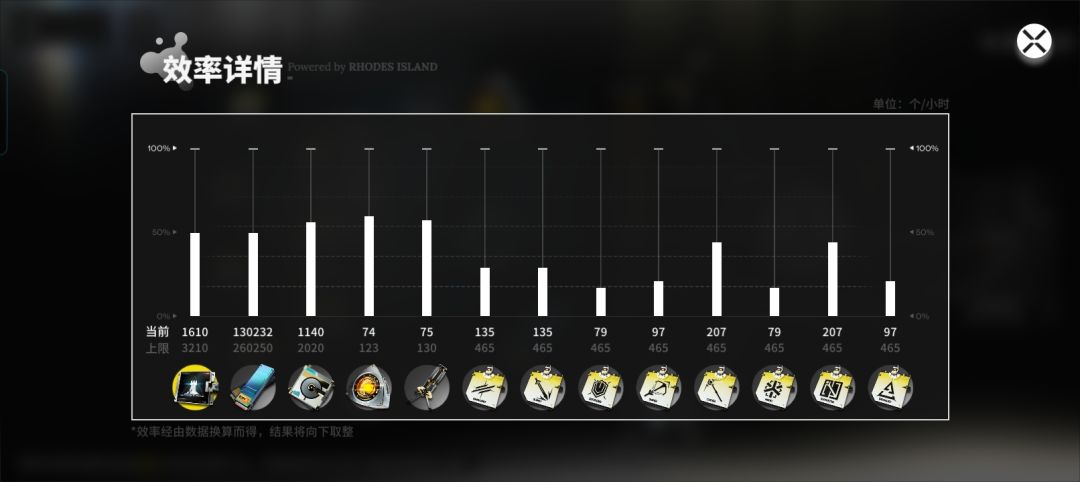 不过好在有几个精一发力的老干员,战斗这块还成,但是多少有点卡资源,回过头去优化之后发现好像没有办法在一关里打出全资源max,顶多7max左右,至少现在我打不出来全max,因为实际上没有时间在局内产线转型,基本建成啥样直到结束就啥样了