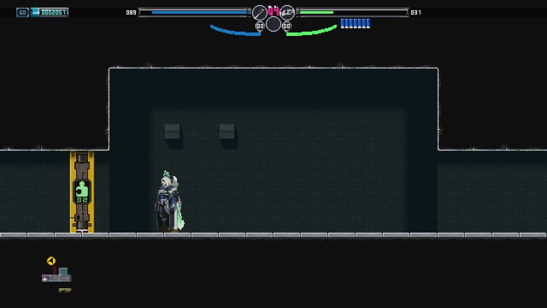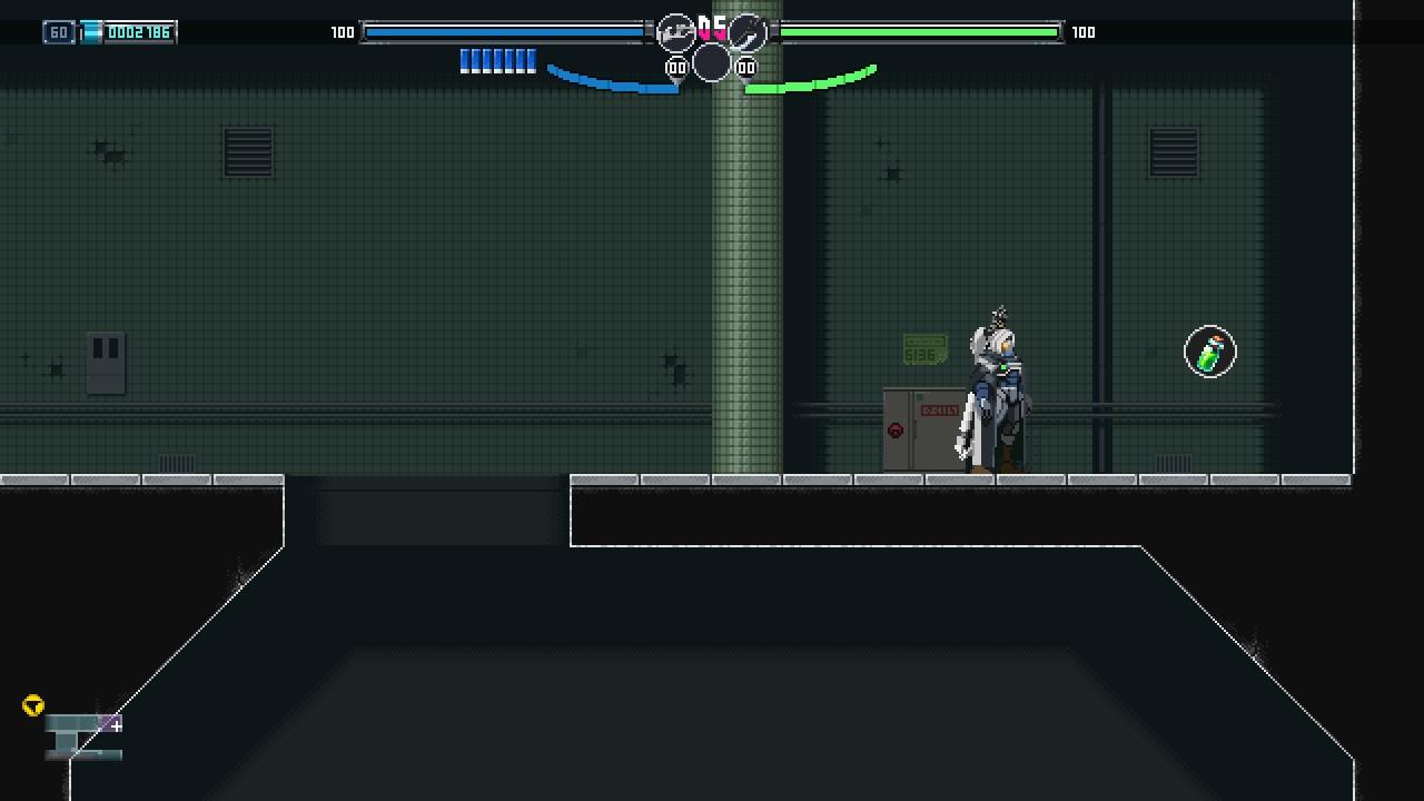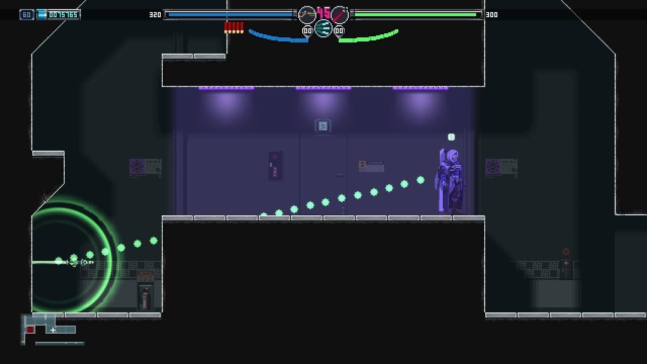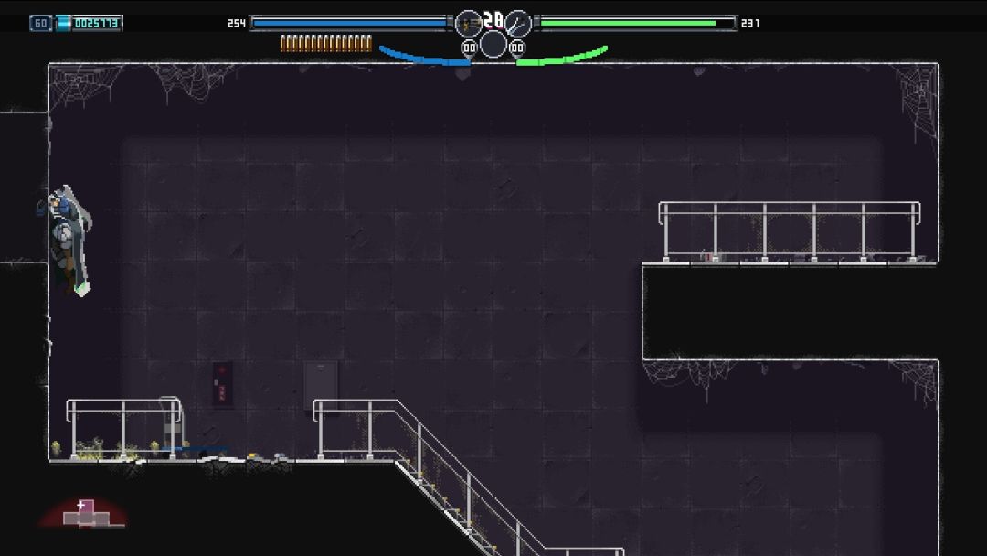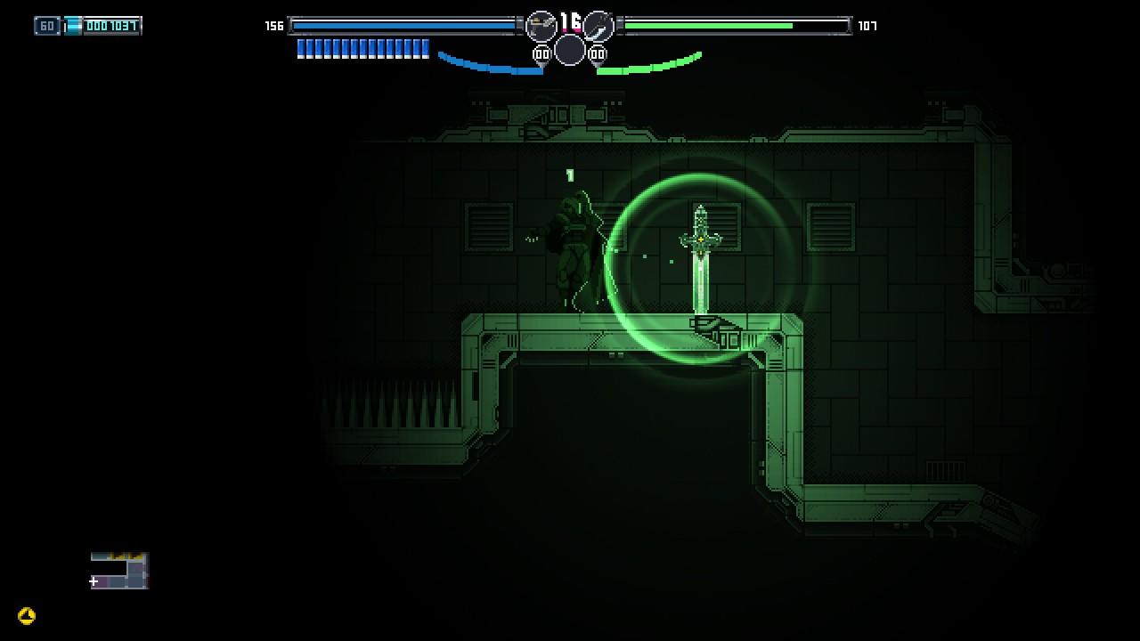 解密也是银河城不可或缺的一环。妖萤刀“勒克丝”可以使特定物体时光倒流,从而创造前进道路。但在有些时候,玩家也可以把她插上墙壁作为踏板向上攀升。那是不是所有高处都可以利用这一方法到达吗?显然并不完全是。制作组对于这爬墙的限制则是通过覆盖一层金属墙壁实现,玩家想要到达高处更多只能通过传送实现,而一些特定关卡则是为玩家提供喷气背包。
