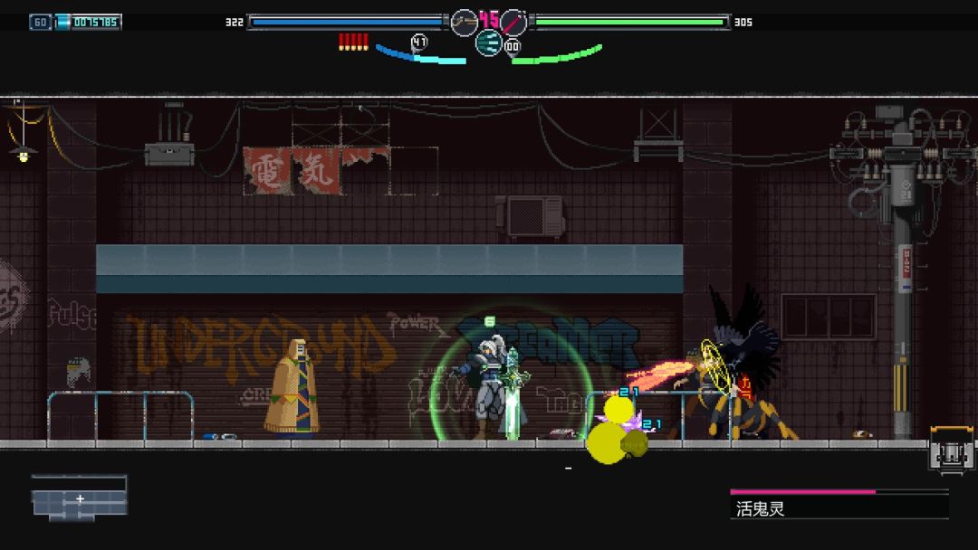 战斗时的资源运转则是围绕HP、MP两部分。玩家通过妖萤刀以外的攻击造成伤害可以恢复MP,而通过妖萤刀造成伤害则是可以恢复HP。面对敌人漫天弹幕,往地上一插剑还能回足够多的血。
