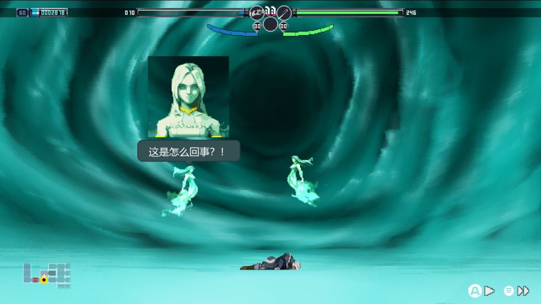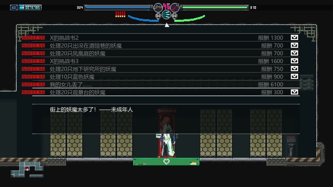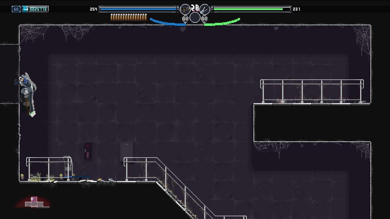 再来看看本作的银河城设计方面。在游戏中,玩家可以去到三张大地图,但是可以细分为十余个颇具特色的小场景:即有充满浓厚日式古典味的凤凰庭,也有末世下荒废的物流中心。然而,玩家在游玩时遇到的绝大多数关卡都是一本道,很少能感受到那种峰回路转的惊喜感。但是,对于玩家探索的限制也只有随剧情推进的各类权限和收集特定数量的拼图。笔者并不是急于推进主线的那种玩家,所以在游玩时经常性地一个劲推图,导致后期要去的地方早早解锁,只要推进相应的主线然后传送就行。