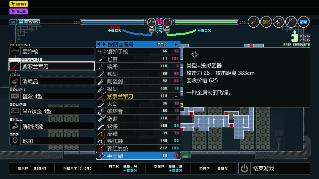 本作的收集要素则是有点乏善可陈,无非是一些提升HP、MP上限,武器道具,拼图之类。但绝大部分收集要素遍布于各种犄角旮旯,需要玩家通过上述提到的各种方法前往。由于跟隐藏结局相关,制作组贴心的为玩家在地图上显示当前区域剩余的拼图数量,再加上传送,查漏补缺也并不困难。