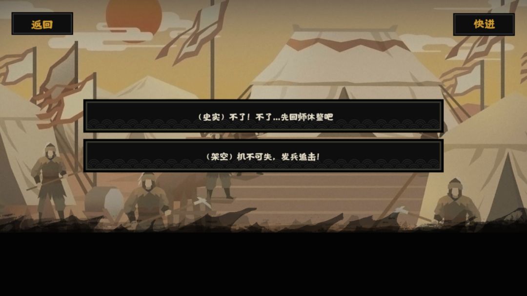 接受诏安后,可触发剧情战斗【鏖战骁果军之战】,战斗胜利后,选择架空选项,即可触发【童山之战】,战斗胜利后可吞并隋。