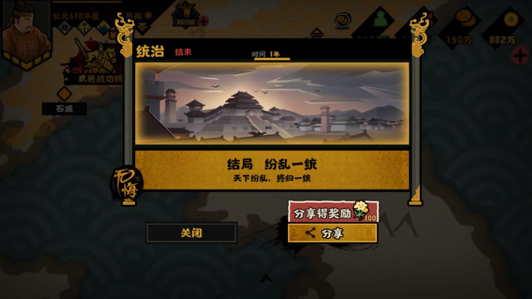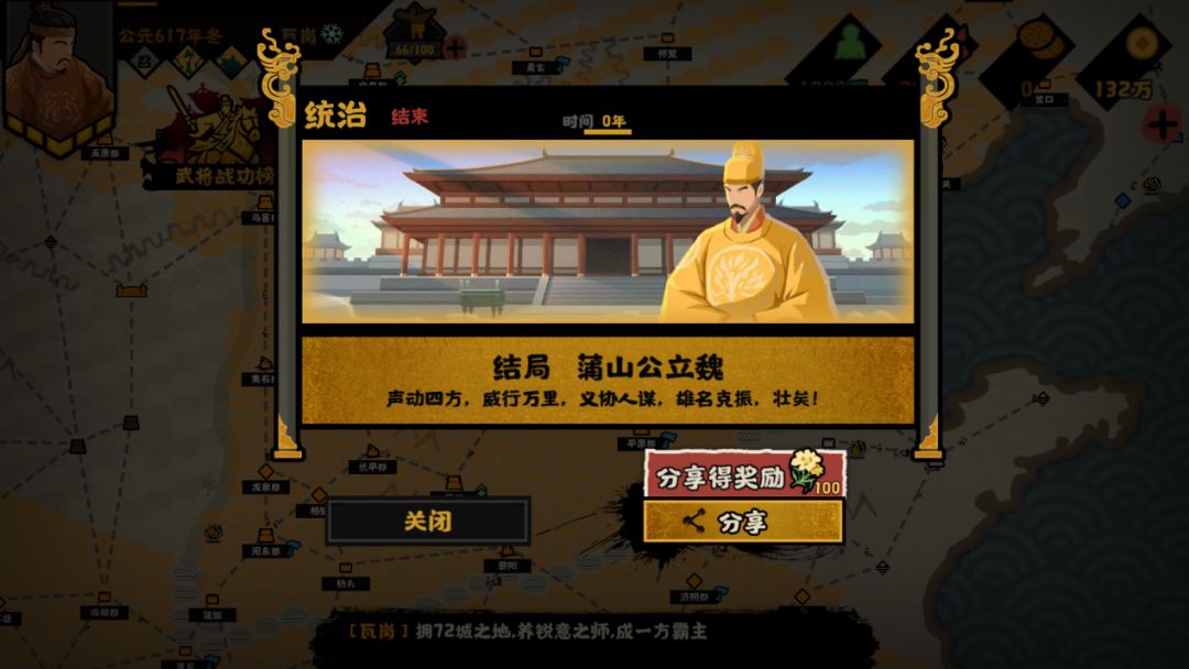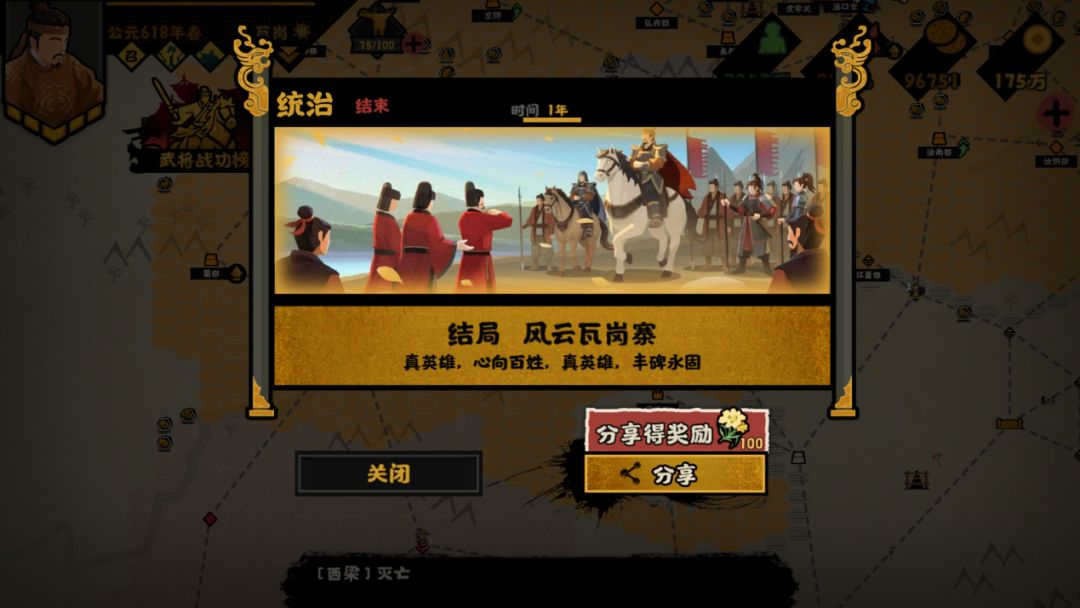 在此之后,同样也是触发使命任务【克关中,灭李唐】,攻灭唐势力。