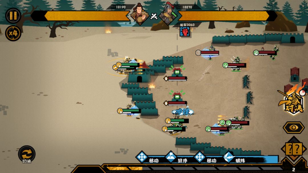 单挑采用五局三胜制,胜利方会获得战功,失败方则会损失一定的军心与军规。