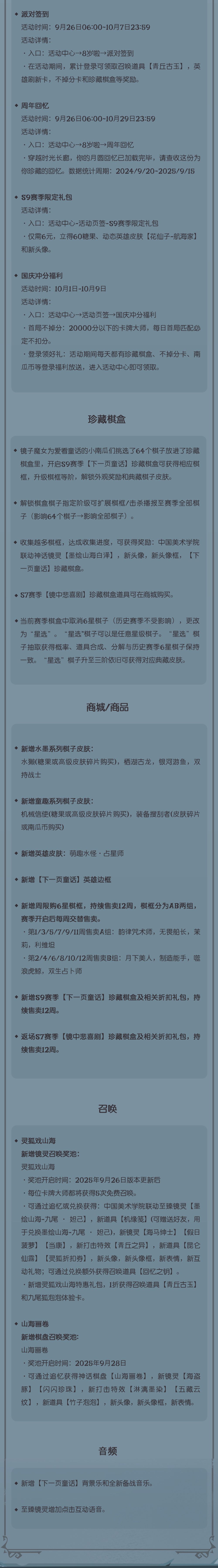 ♦ S9全新镜灵、棋子皮肤上线商城,8周年庆活动开启!