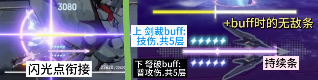 非常复杂。但对于咱手残来说有用的就上剑裁技伤buff和下弩破普攻buff,以及+buff时给的无敌黄条。零时空间停止读数就行了