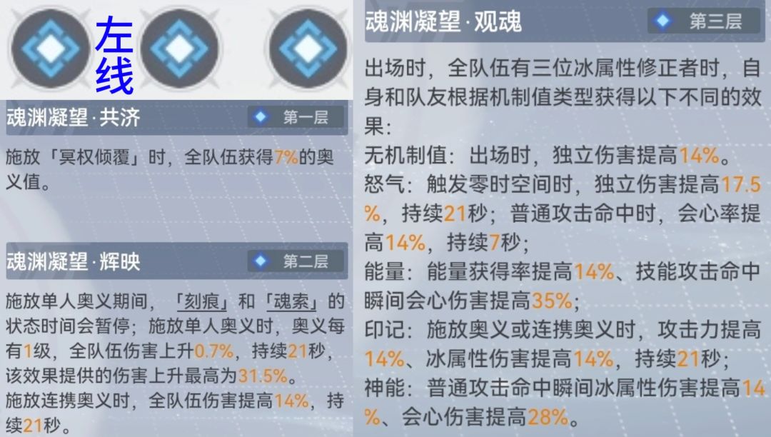 左线提供全队奥义效果(单人奥义的全队伤害上升、连携的全队伤害提高)