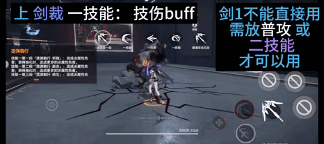 (剑)技能一非直接放,需要普攻或技能二放后,触发。