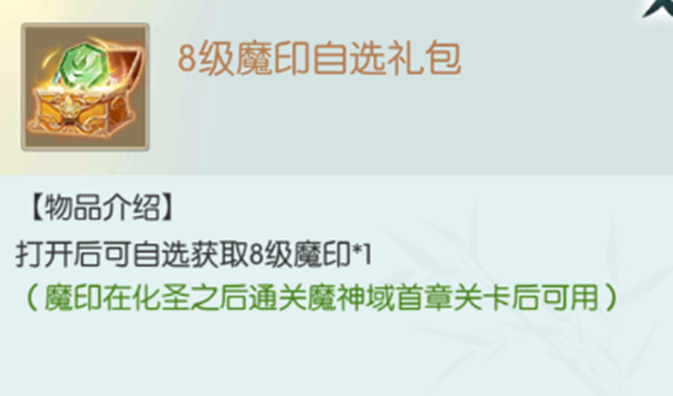 此外,8级魔印自选、天阶自选招式礼包、神器自选礼包、神兽内丹自选礼包同时返场,助力佳节!