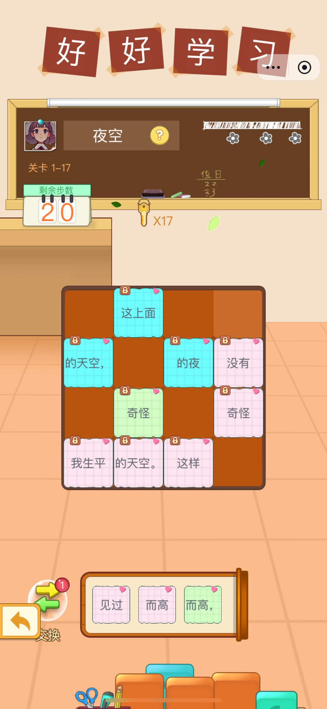 之后,就参加了TapTap 的小游戏聚光灯计划,制作了《空了个字》。《空了个字》复用了很多《泰米家小纸条》的代码和 UI 组件,游戏素材另外单独找的。