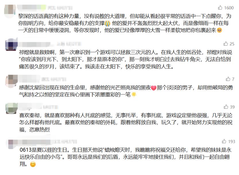 和最常见的“追求胜利”“用强大来实现自我价值”的游戏类型不同,乙游提供给玩家的是“体验被爱”,《恋与深空》在这个基础上更进了一步,不但让玩家感受到爱意,还会向玩家证明“这份爱意是你应得的”。“猎人小姐”们不会觉得自己在游戏中被生硬地套上一个玛丽苏的外壳接受汹涌却没来由的好感,而是在调查事件、寻找身世等剧情故事中和男主角细致入微地互动,男主角的鼓励、开导、关心、陪伴都有迹可循,让她们在无数个瞬间里体验到“被戳中”的心绪起伏。