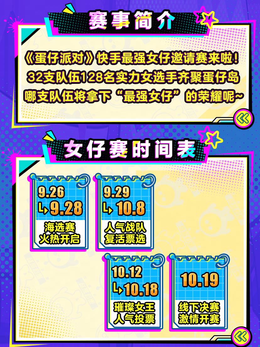9月26日(周五)-28日,《蛋仔派对》快手“最强女仔”邀请赛海选赛火力全开!
