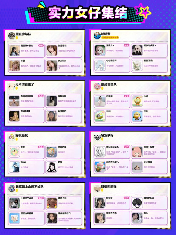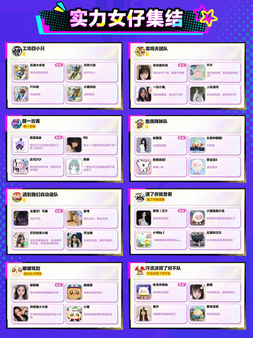 128位实力女选手,32支战队现已就位。她们中有地图速通王者、超燃默契组合、惊魂夜满阶玩家......锁定海选直播,为你支持的最强女仔打call!满足观看时长必得动作<放马过来>、表情<啃啃>,蛋仔×优酷vip年卡、蛋仔周边等惊喜奖励不定时掉落。哪6支女仔战队将脱颖而出?谁又将用实力引爆全场?一起见证最强女仔的诞生!