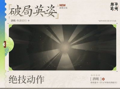 ※ 收集该衣装,即可拥有酒帐全新破局英姿、破局音效、派遣公司休闲动作。