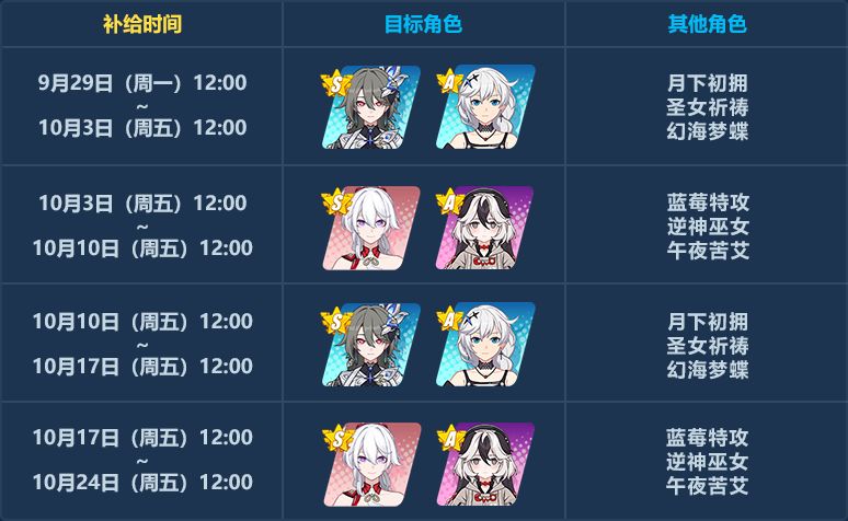 【补给】庆典角色补给丨咚!炽愿吉星等目标限时UP
