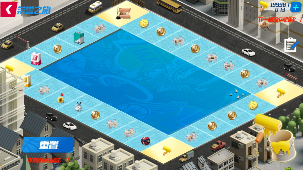 每次“抽一次”,则随机解锁一个奖励格,获取奖励格中的“球员典藏”或“典藏硬币”或“通用位置典藏”。至多抽取9次,成功将骑士队詹姆斯球员典藏收入囊中!