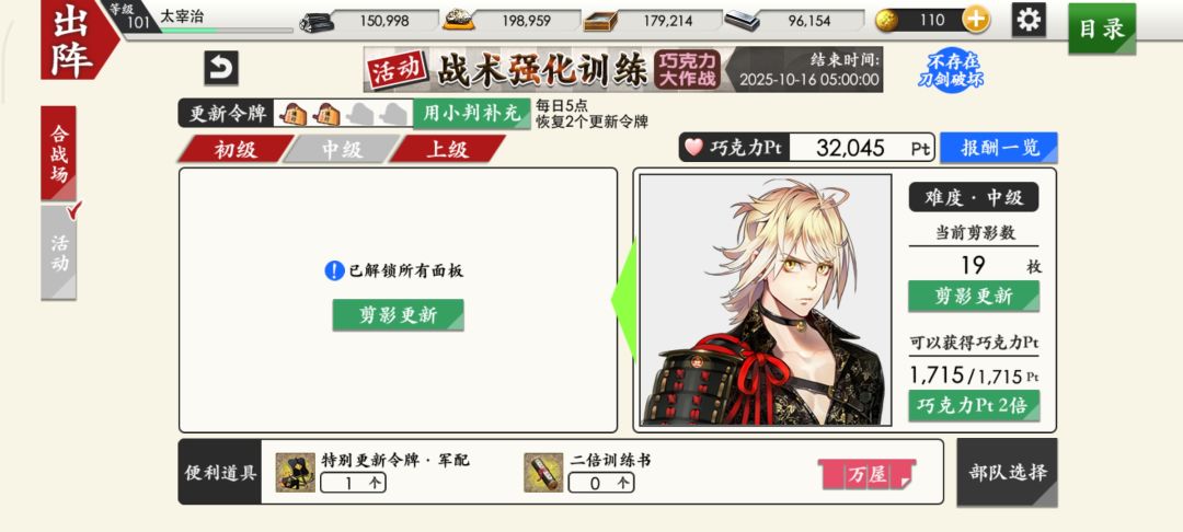 明石国行3,压切长谷部4,大俱利伽罗9,同田贯正国2