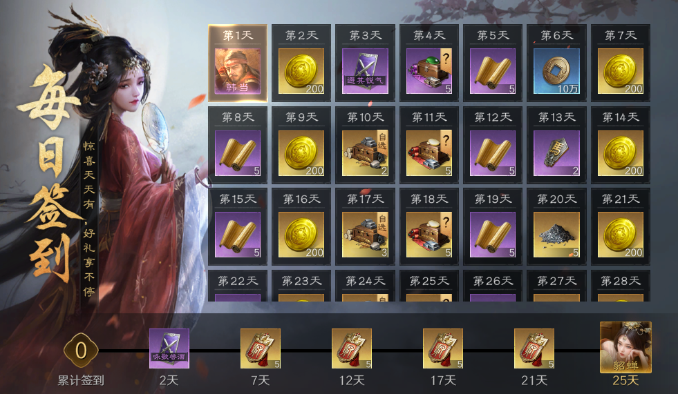 更有可签到活动领橙色武将貂蝉!