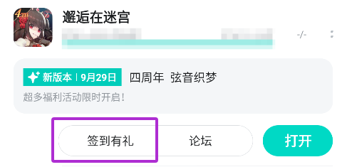 打开TapTap App→我的游戏→找到《邂逅在迷宫》→点击“签到有礼”
