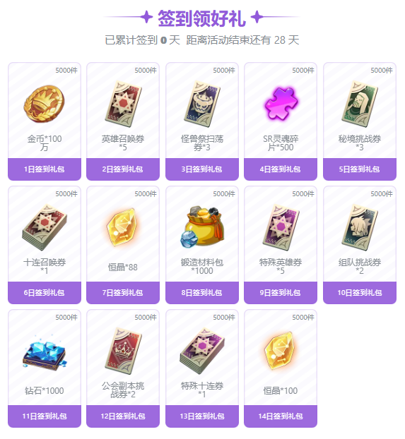 签到奖励一览