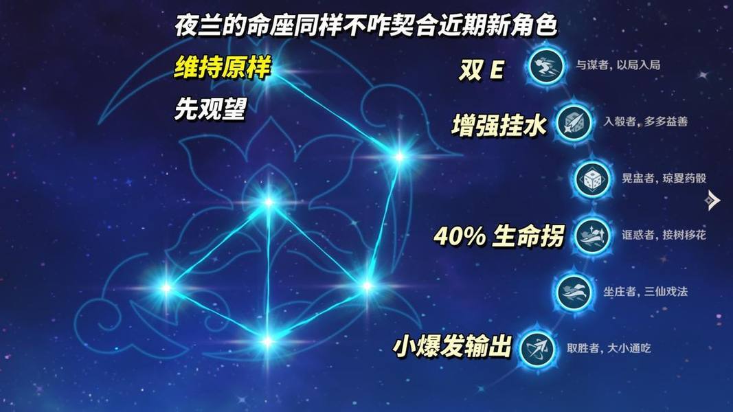至于老玩家维持原样即可,暂无新角色提及对“2命挂水提升”、“4命生命拐”这2个机制变化有需求。