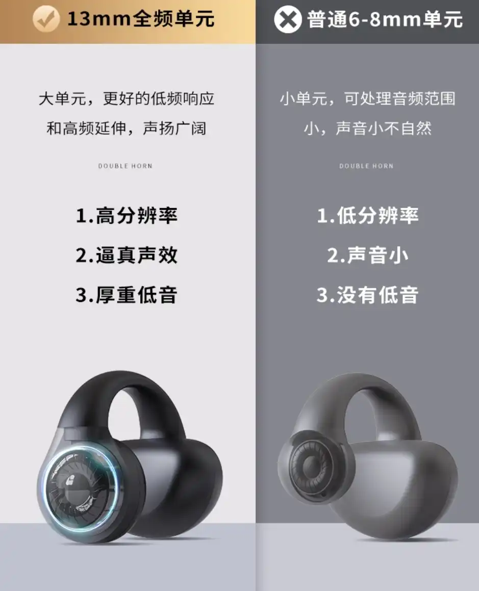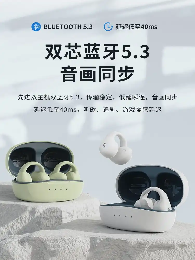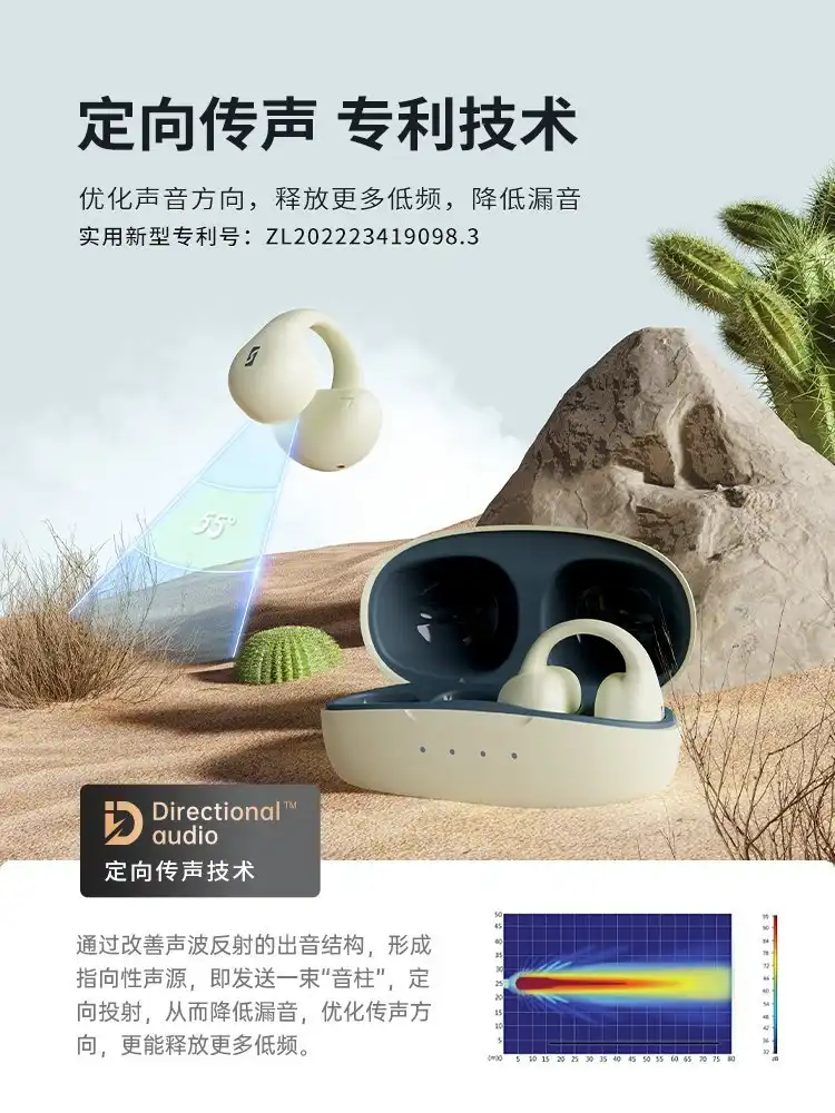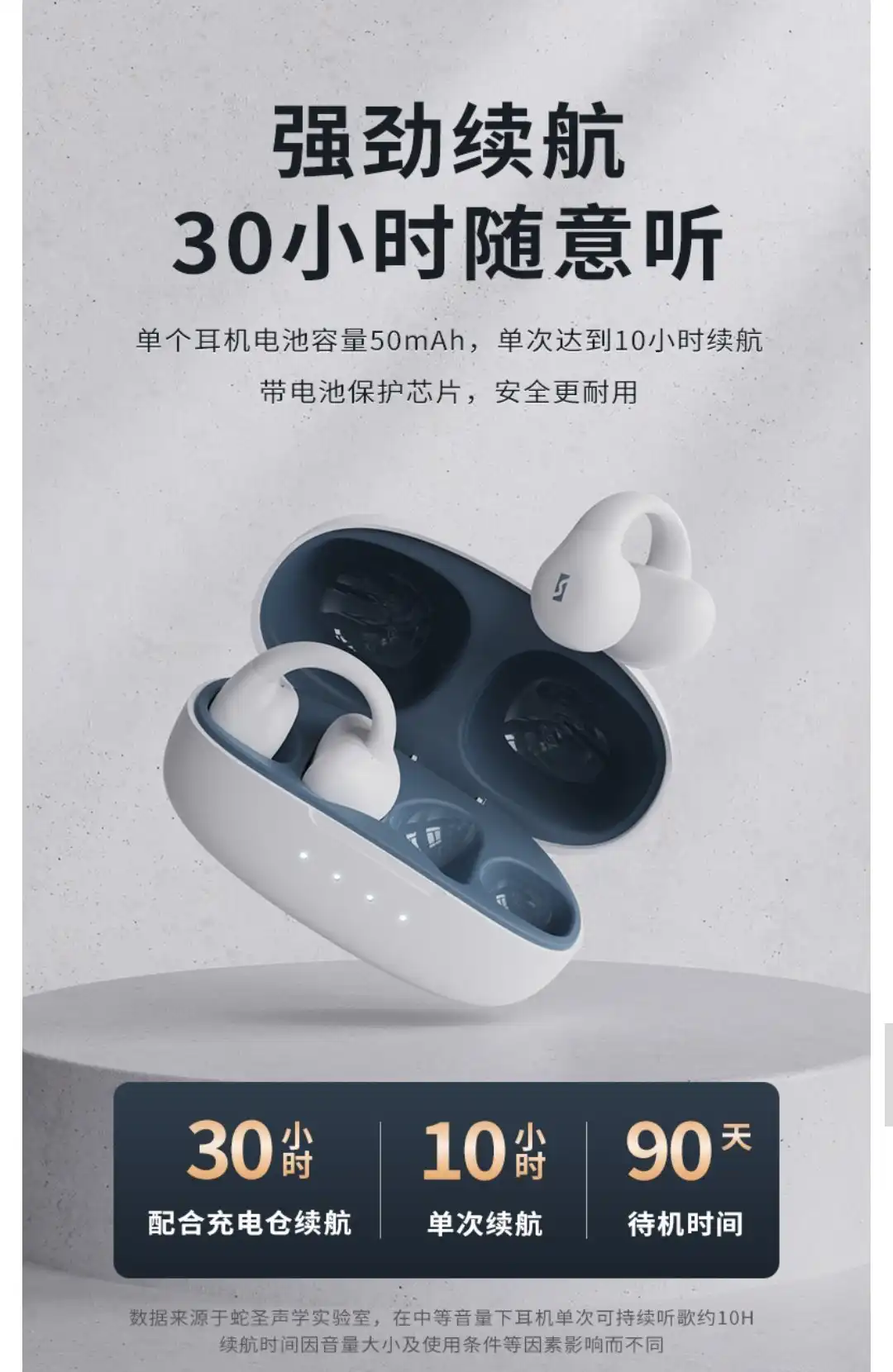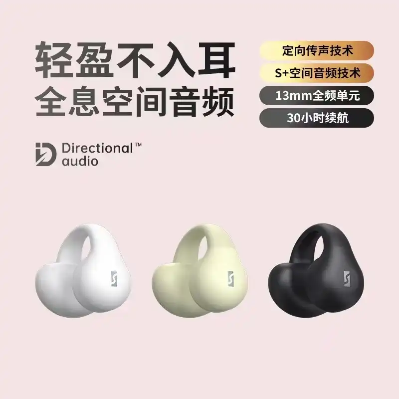 夹耳式耳机隶属开放式耳机的一种,自然有开放式耳机的优点,相较于入耳式耳机,这款耳机提供了更宽广的声场表现,从而让声音的立体感更强。除此之外,由于没有入耳式耳机带来的那种压迫感与堵塞感,因此声音听起来更加清晰自然。同时避免了因长时间佩戴对耳道造成潜在损伤。