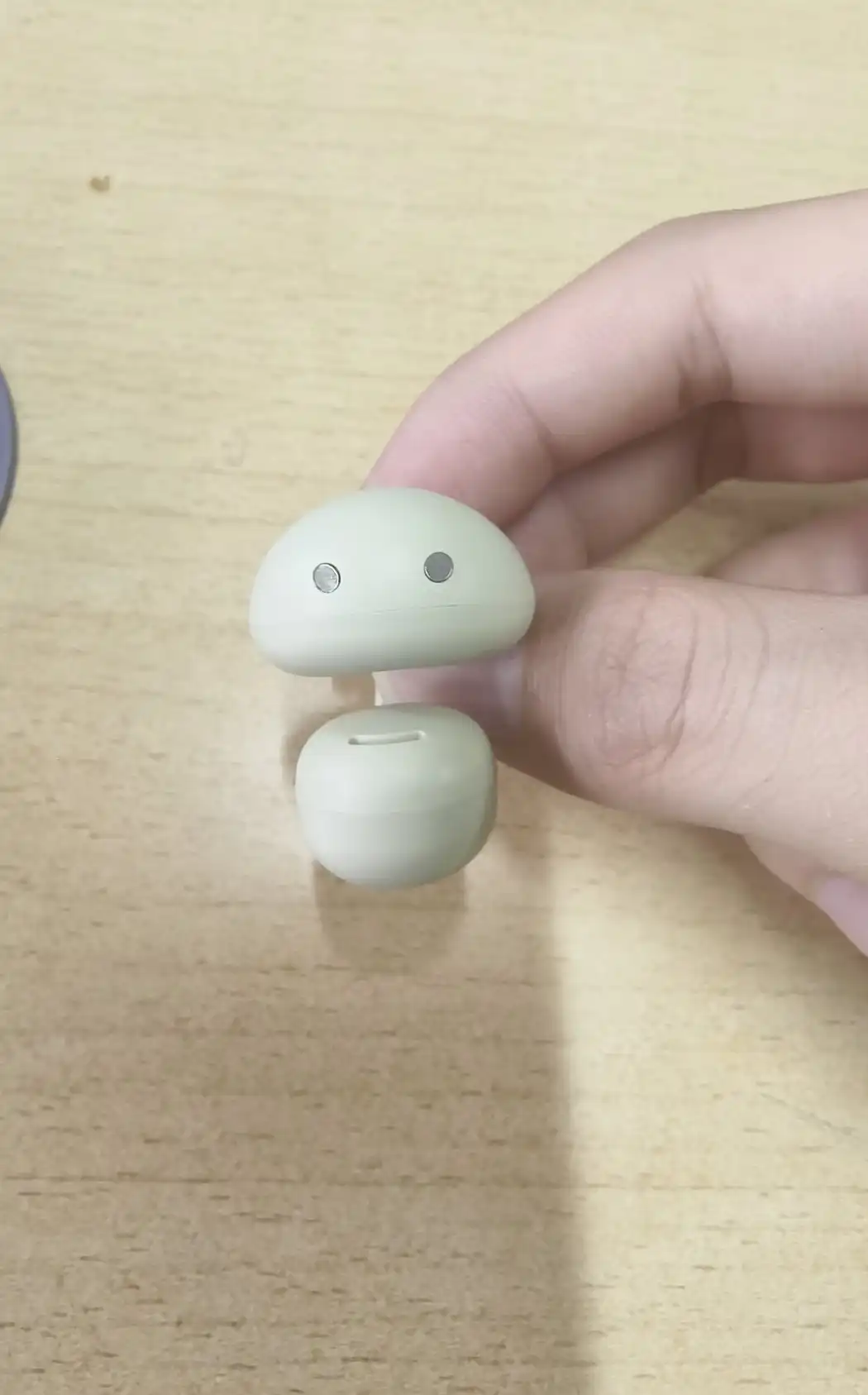 充电盒采用轻磨砂工程塑料材质,形状类似于鸭蛋形,握于手中时手感特别舒适。