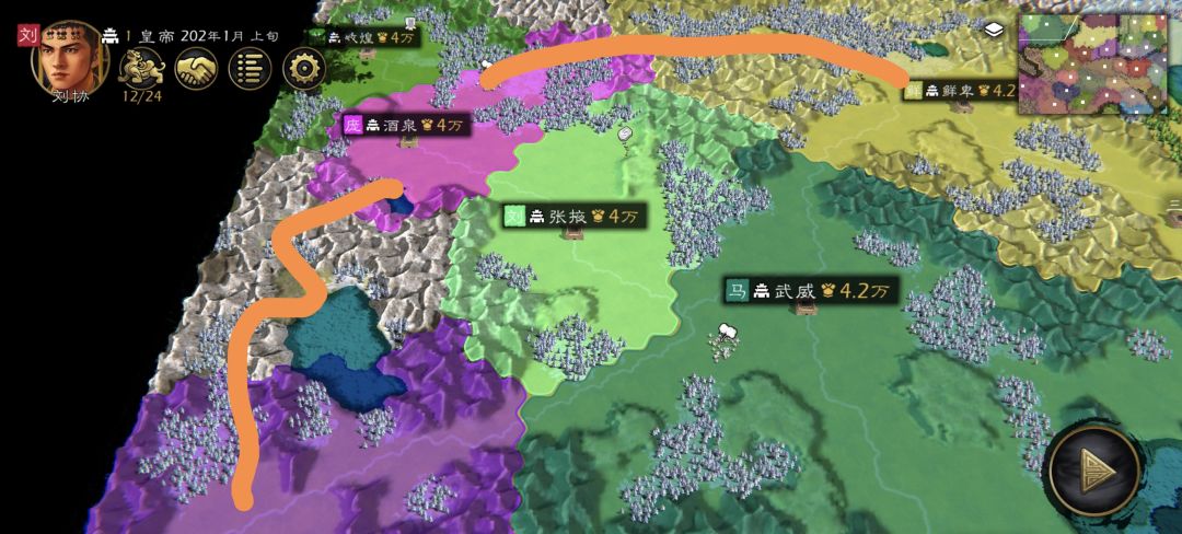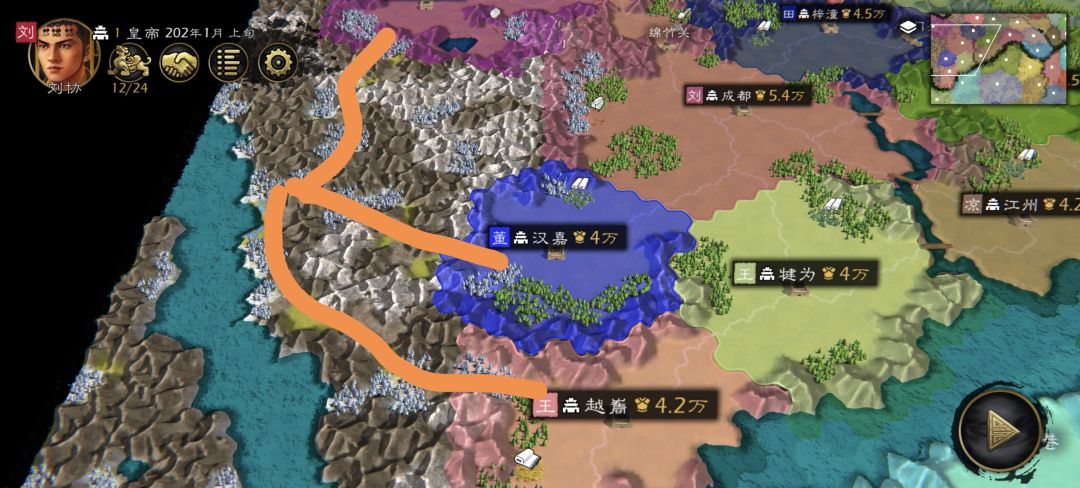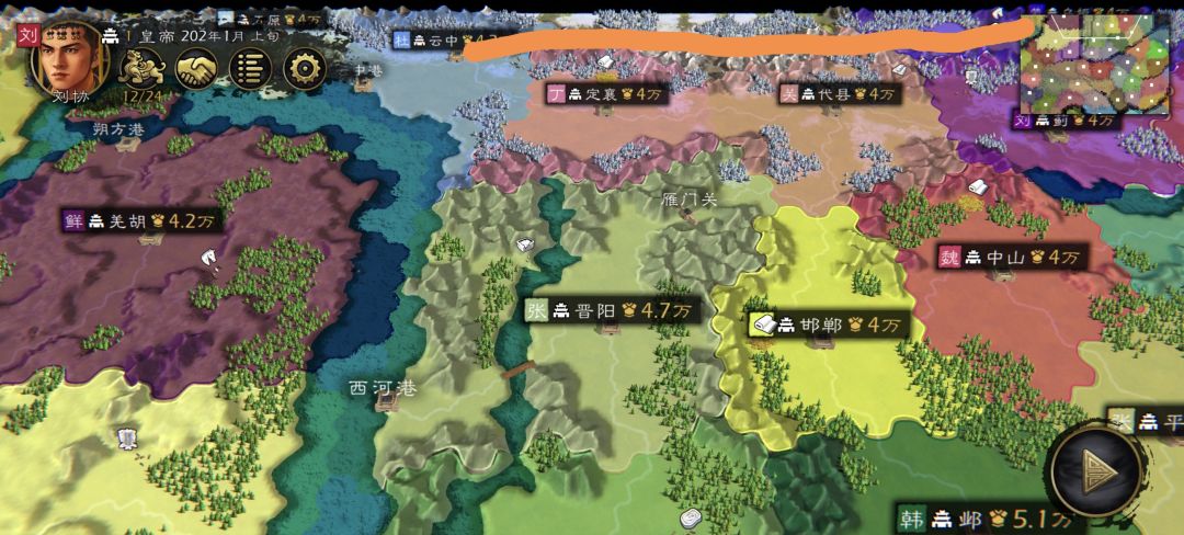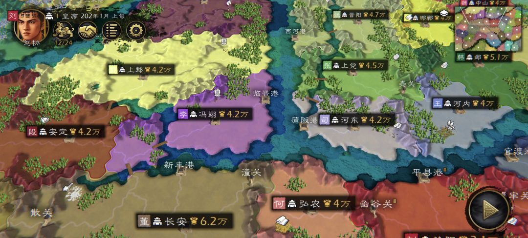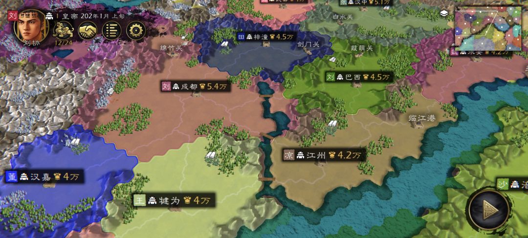 本人骁龙至尊版处理器,但还是感觉大地图就够用了,我参考汉末州郡地图,去除府城级别,设置了90郡城和13关隘、44港口。最近修改完了,特发出来与诸君共享!分享码在第12张图