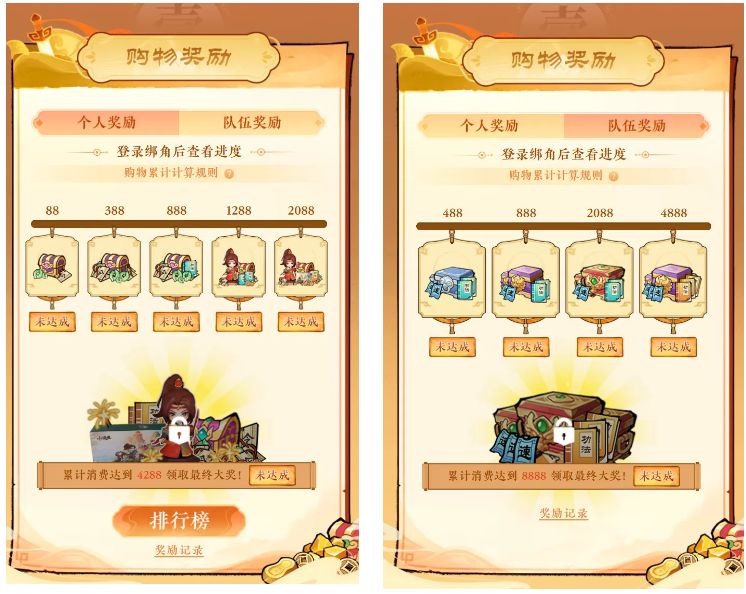 奖励分为个人奖励和队伍奖励