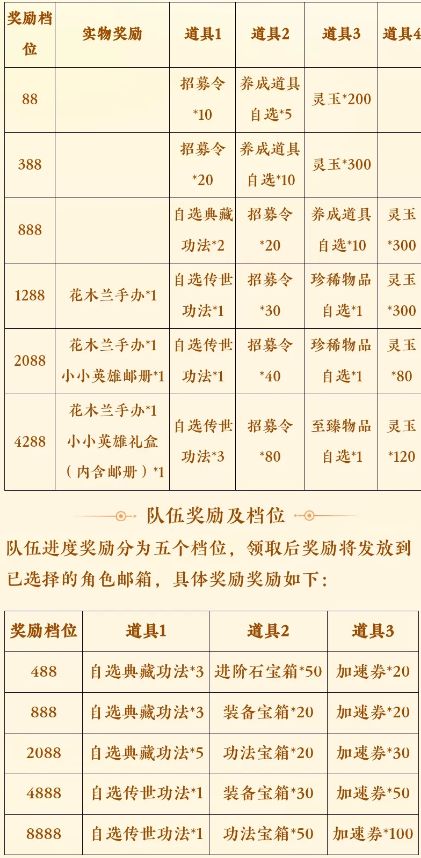 到达最高两个档位还能获得花木兰手办、
