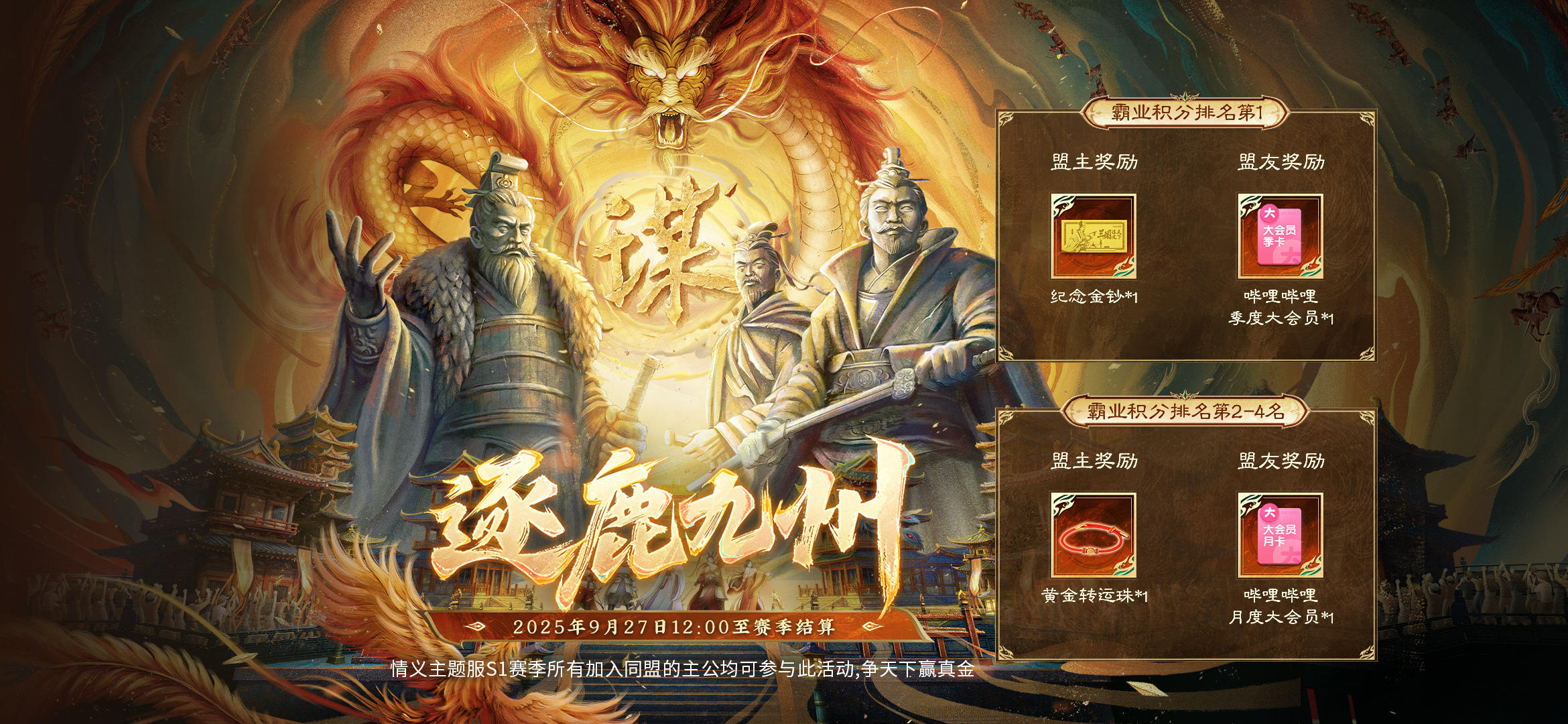 活动时间:9月27日12:00-该服霸业结算。