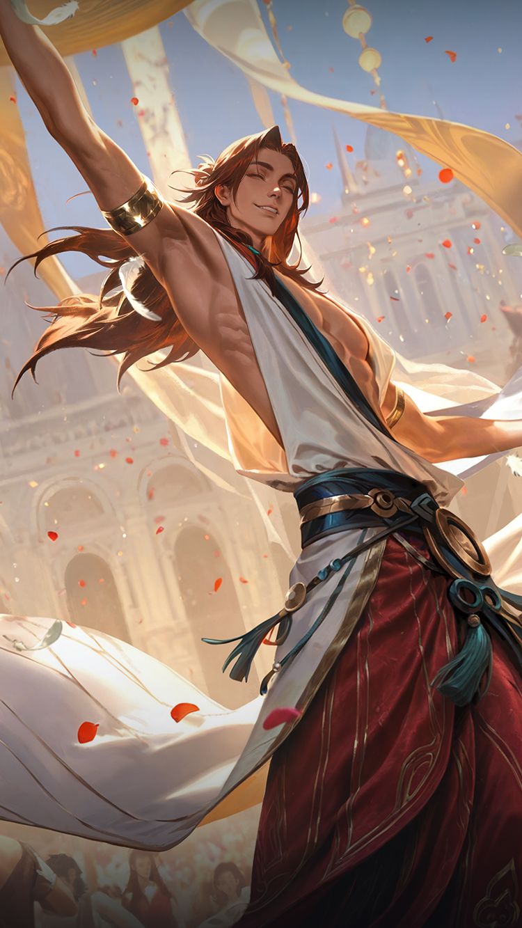 街道上空飘下彩花,庆典的气氛愈加热烈。狄俄尼索斯换回了熟悉的白袍,带着醉意转身融入人群。
