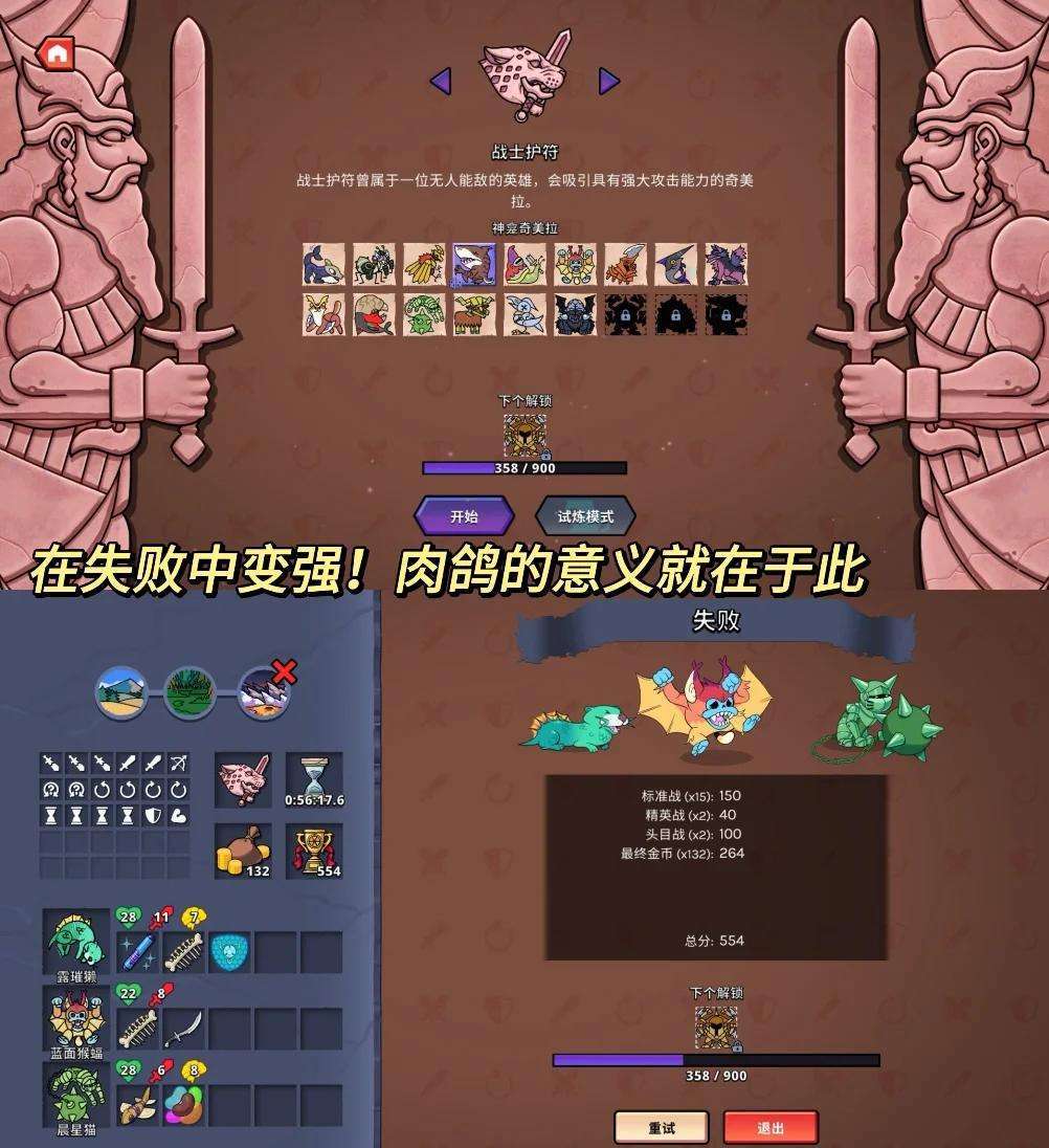 奇美拉养成:可收集超过100种手绘奇美拉,每种生物拥有独特技能和属性(如高防御、高速度等),需根据战斗需求灵活组合阵容。