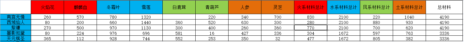 武侠经脉消耗药材一览表(新增紫镰、西域仙人 未完成)