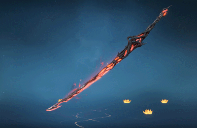 喷薄而出的火红烈炎、爆焱火舌舔舐的残缺刀身,还有漆黑的余烬……这太刀的“红色金皮”,劫妹简称太刀“红皮”。