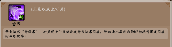 主动技能3:雷动术(多个目标),装备“雷刃”皮肤(三星)获得雷动术