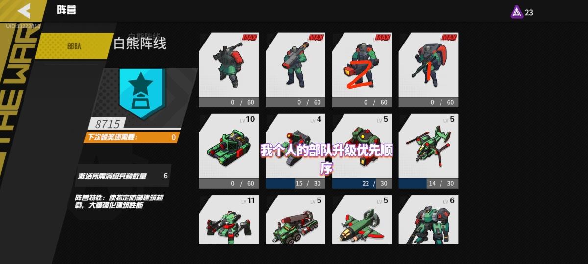 最先把苍蝇升满级,其次是反坦克兵,因为后面通过科技中心把坦克兵转为苍蝇加的攻击力是最多的