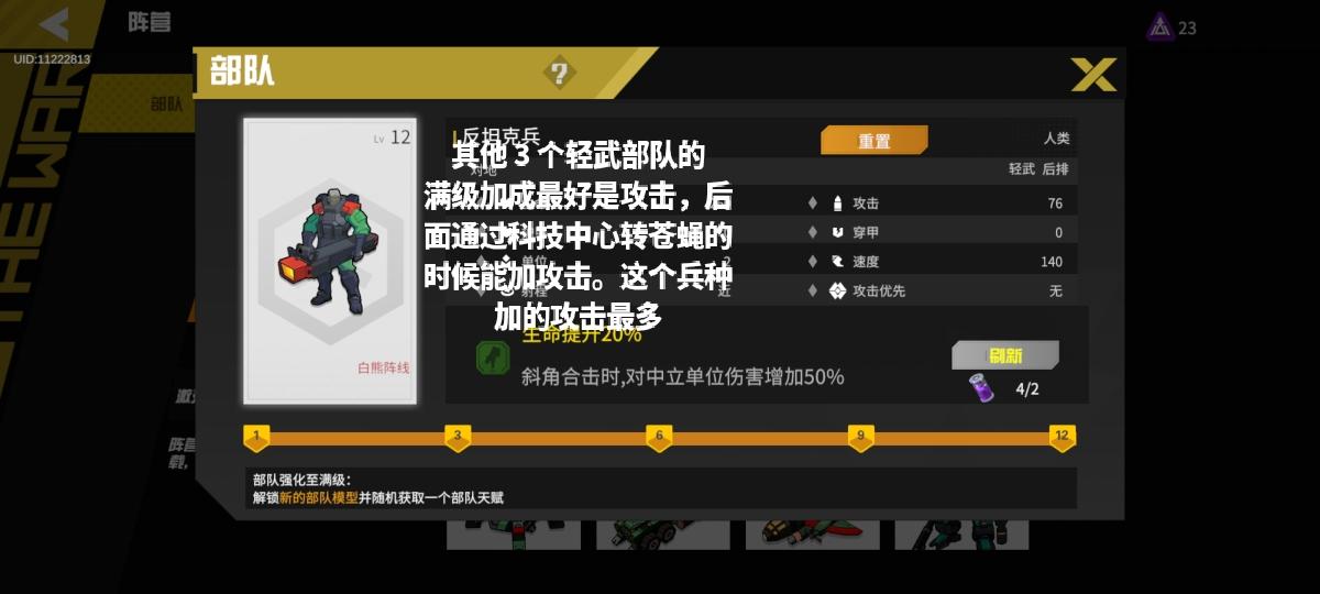 然后是部队满级天赋,苍蝇推荐攻速,其他三个推荐攻击,主要是后面转苍蝇个苍蝇加攻击用的