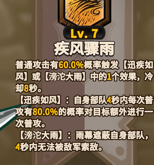 理解为部队每次攻击有概率额外造成一次普攻(4秒内置cd)
