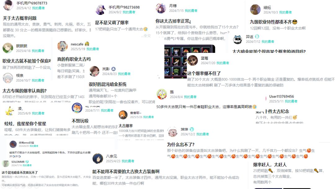 勇者们中午好~在去年混沌地牢上线后,我们收到了很多关于太古装备获取难的反馈主要集中在太古暗金成套太难,无定向部位产出,只能依赖活动投放的任选箱子大家的吐槽和不满铁匠都收到了!必须承认,旧的太古暗...