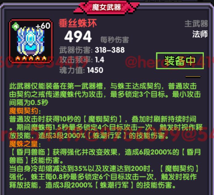 魔女武器为一个bd最基本的东西之一,然后再考虑限定升星洗练武器与魂珠的取舍:优先把三星魂珠做出来,其次再对武器进行洗练,不要强求三橙词条(黑起来没完没了),因为三星魂珠做出来你才能真正感受到这个BD的强大