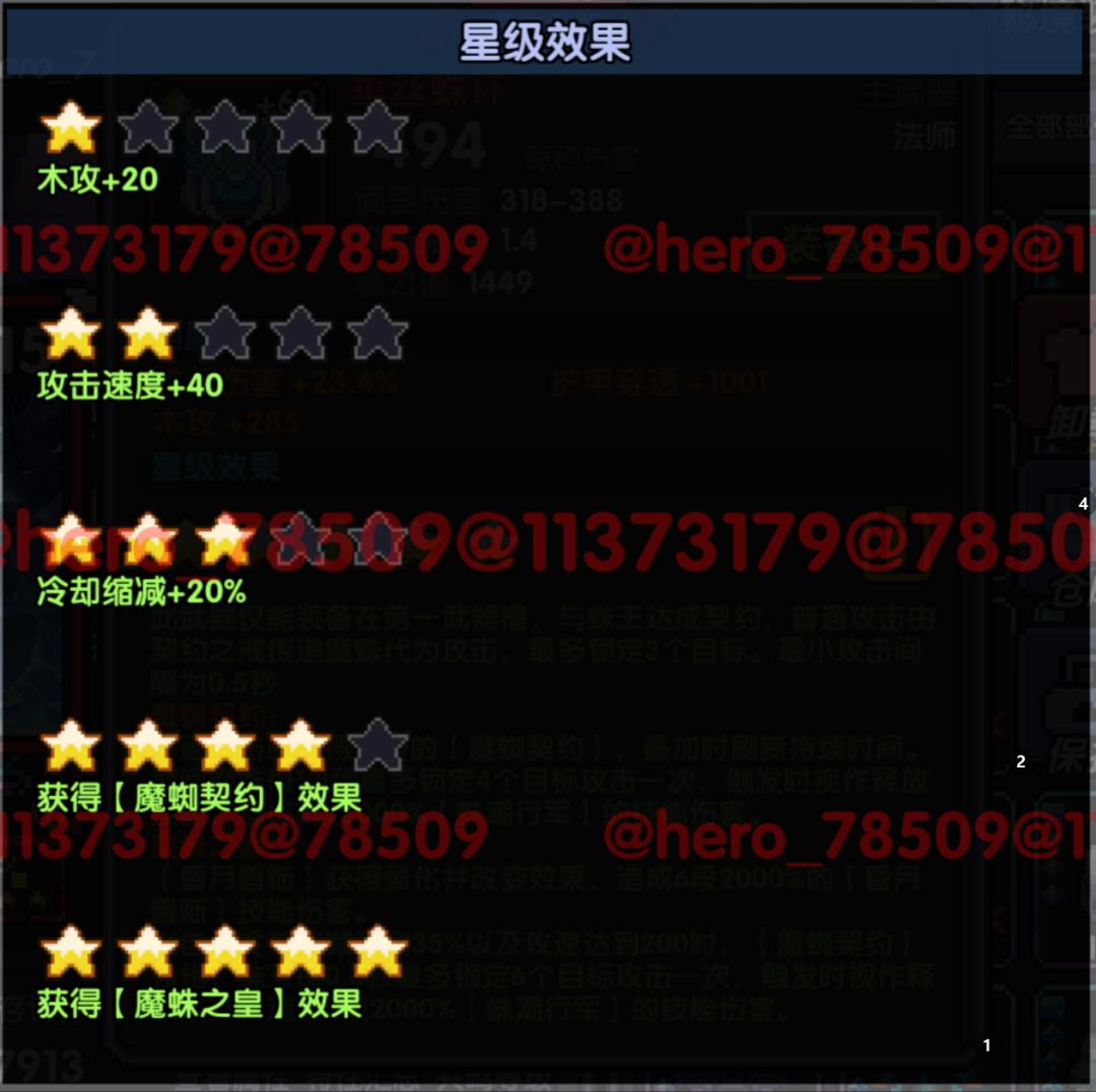 三件套效果给了40攻速以及10cd,配合武器的攻速以及星级效果给的cd,很达到200攻速,40cd的基本要求。【蛛潮行军】一共能减少396的木抗