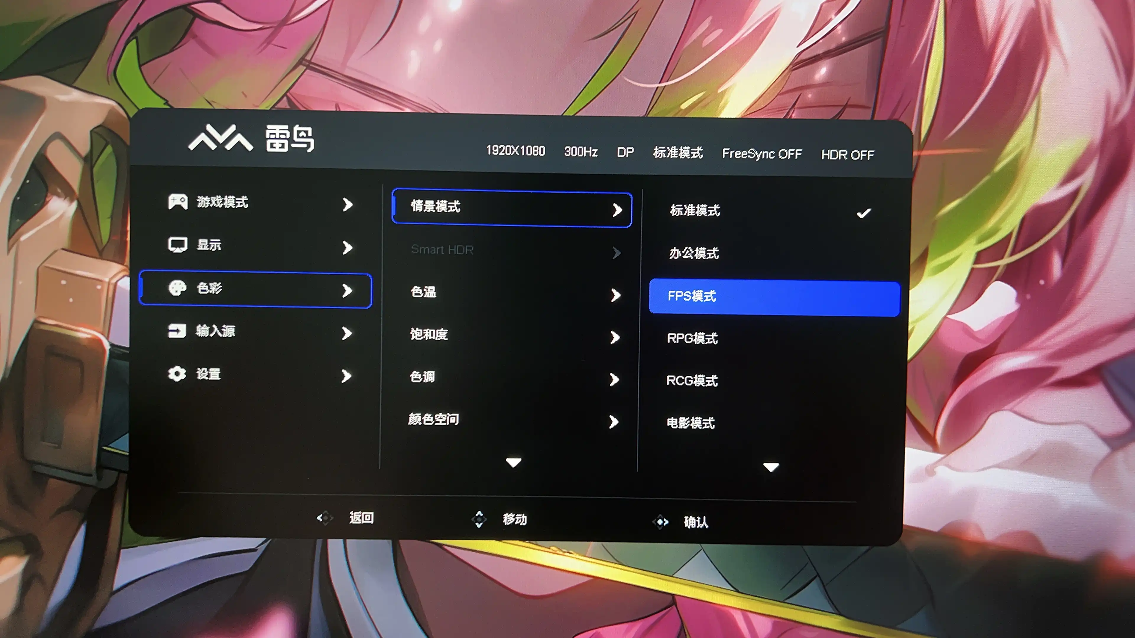 98% DCI-P3+99% SRGB色域覆盖,色彩还是比较鲜艳的。阿尼亚的粉色头发展现出高光,约尔的蓝色礼服带着丝绒质感,两小只真的好可爱!但屏幕微微偏红,不过作为300Hz的高刷显示器,也是聚焦在FPS竞技类游戏,所以基本可以忽略不计。