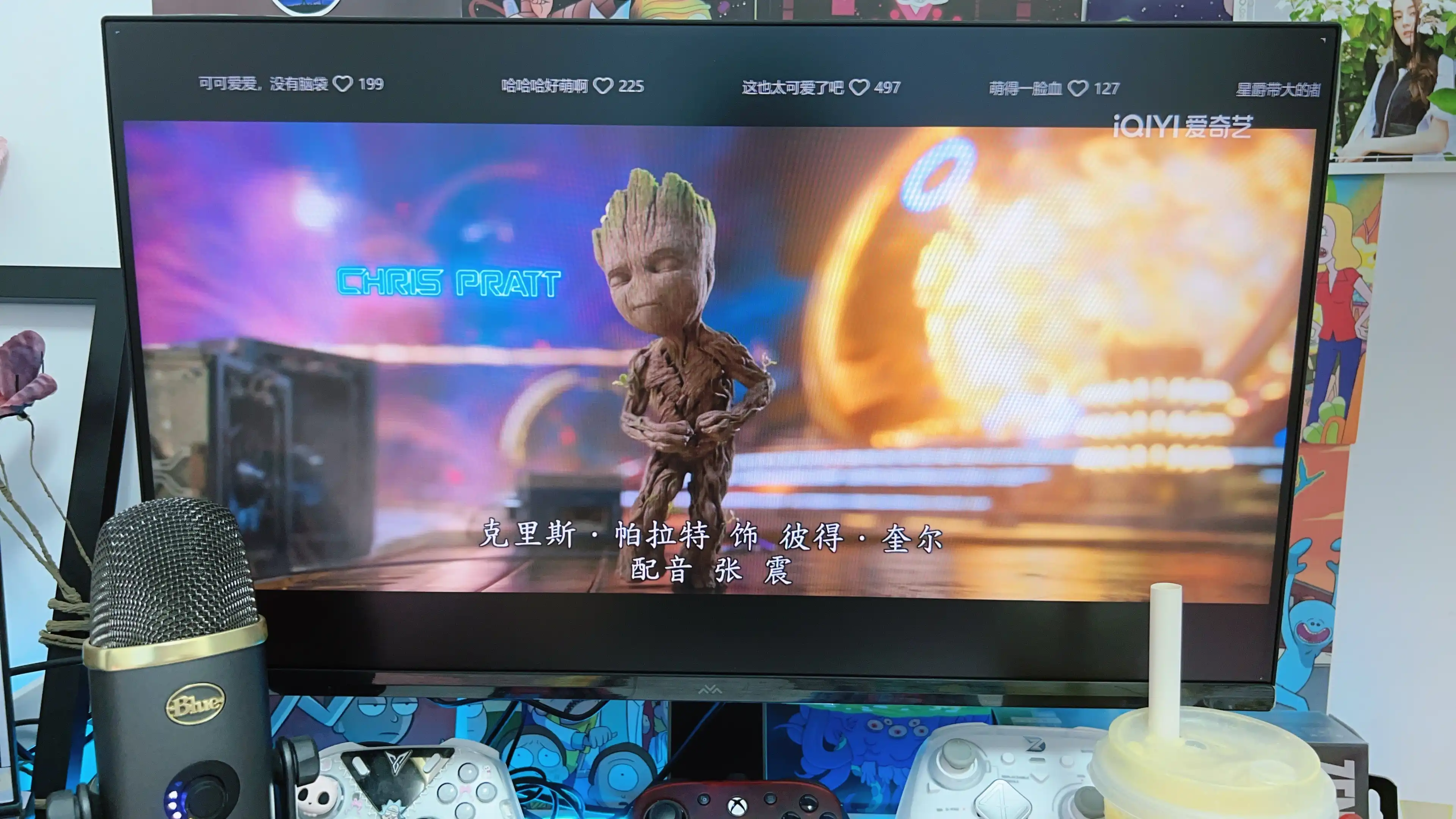HDR 600认证+600nits峰值亮度更是“影音杀手”!看电影《银河护卫队2》时,宇宙星云的绚烂色彩、开局太空打斗细节都清晰透彻,强光场景不晃眼,一些小树人表情细节也展示的很清楚。